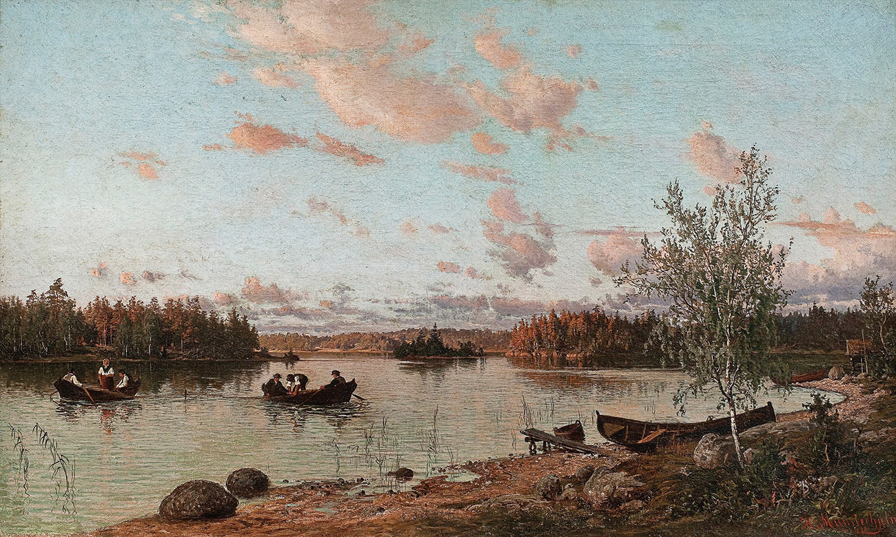 репродукция пейзажа художника Мунстеръелма Ялмара — "Берег реки на закате"
