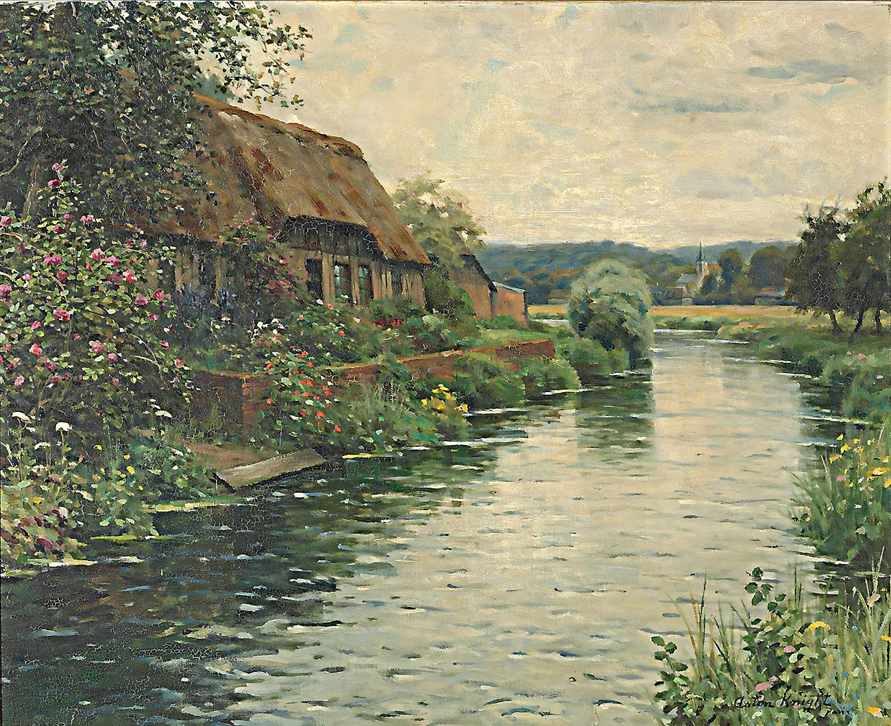 репродукция пейзажа художника Найт Луиса — "Коттедж у реки"