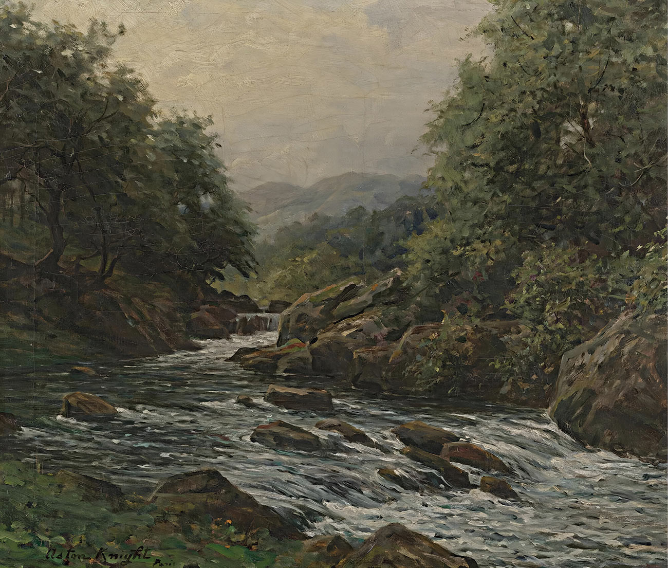 репродукция пейзажа художника Найт Луиса — "Горный поток"