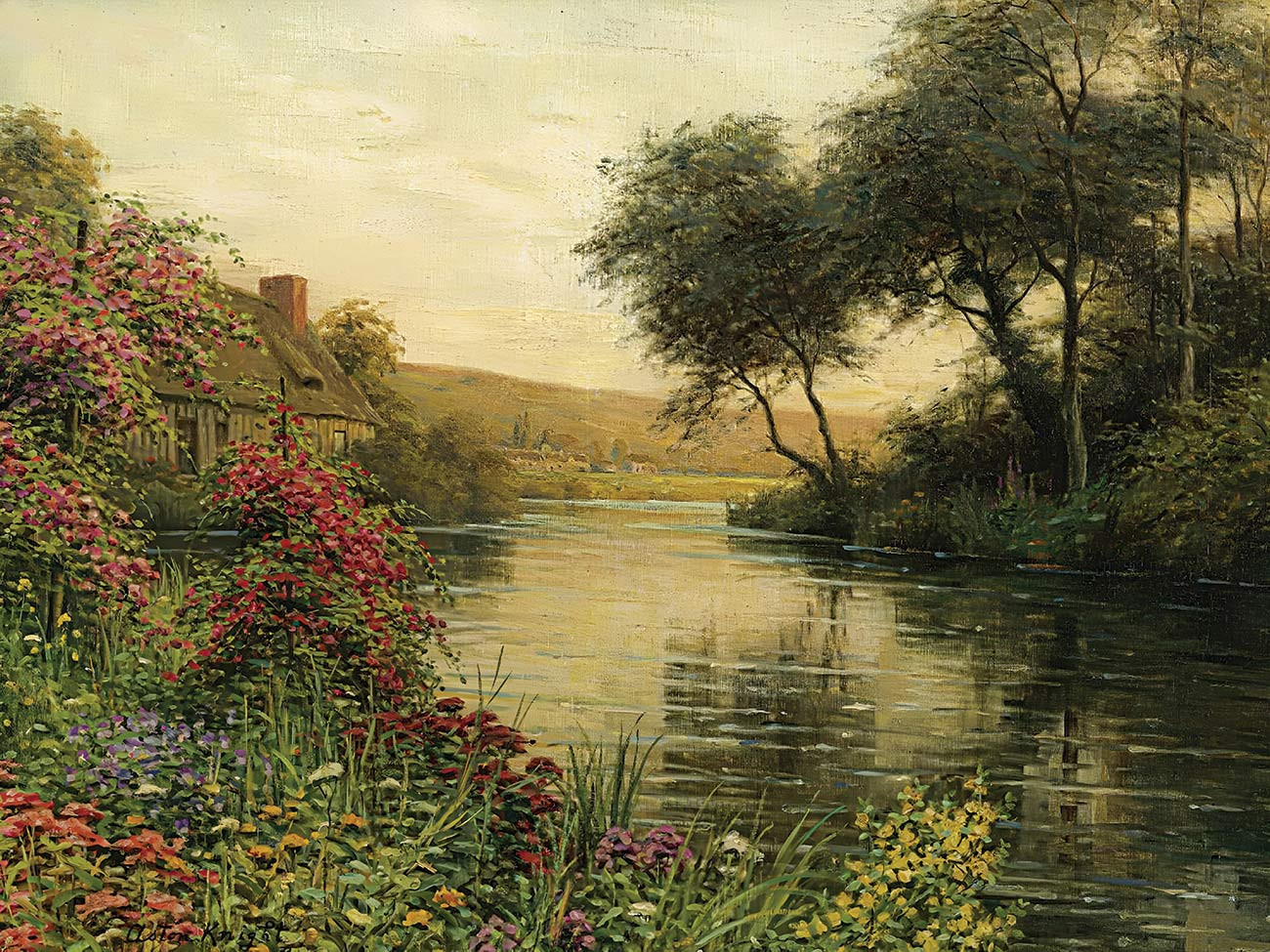 репродукция пейзажа художника Найт Луиса — "Розы на берегу реки"