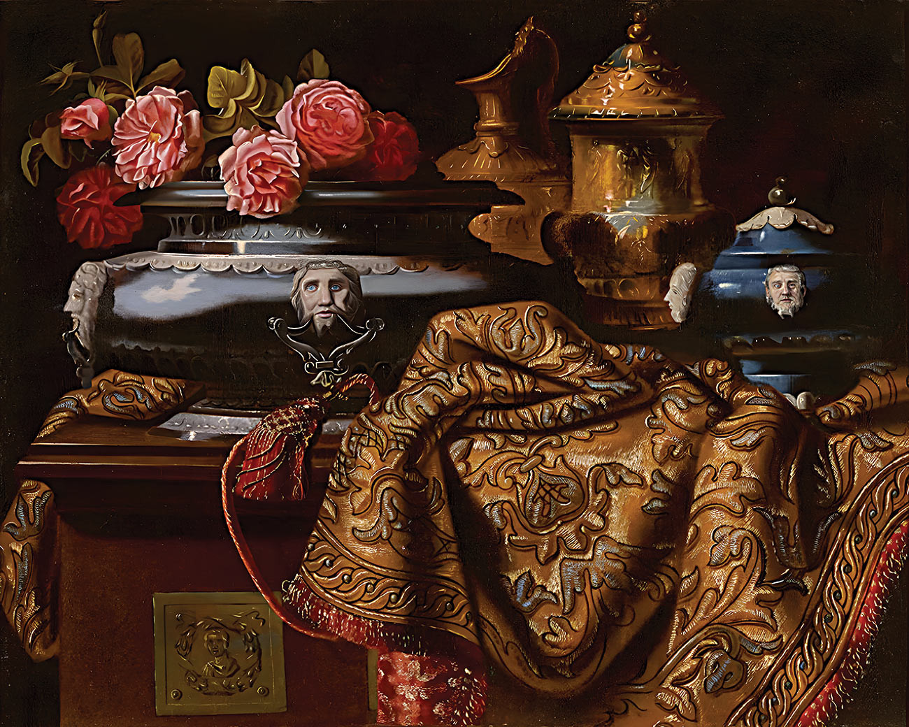 ₴ Репродукция натюрморт "Натюрморт с коврами и цветами в вазе" - Наварра Пьетро