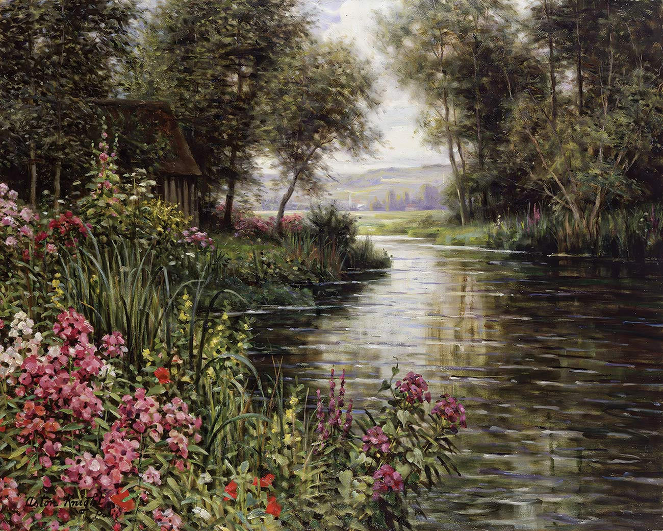 репродукция пейзажа художника Найт Луиса — "Цветы у реки"