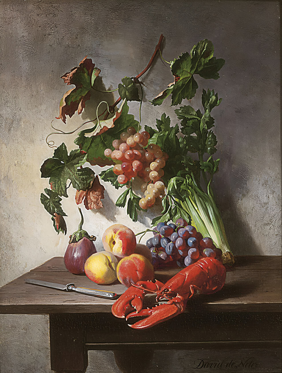 купите репродукцию натюрморт художника Нотера Давида — "Натюрморт с фруктами, овощами и лобстером"