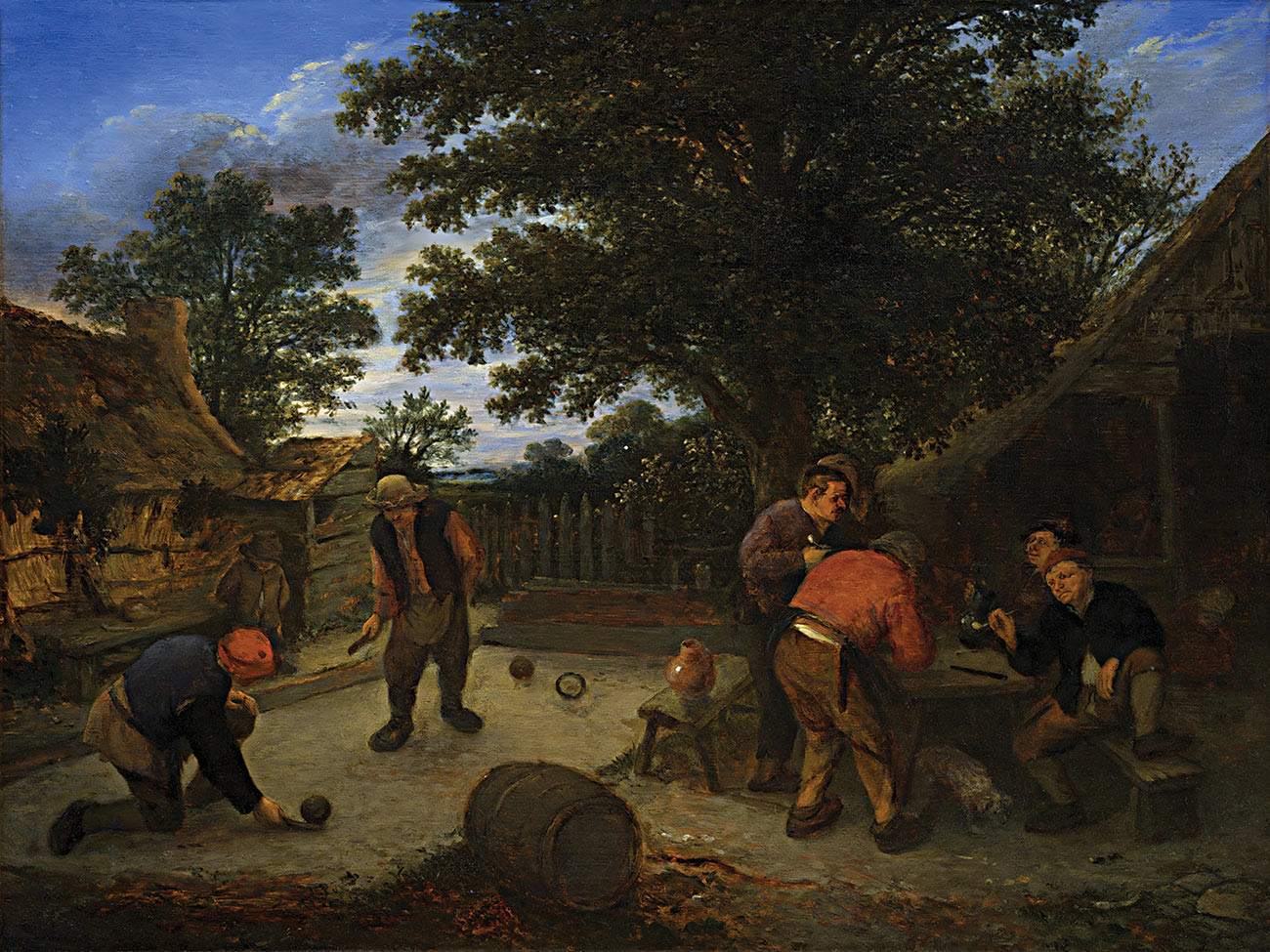 репродукция картины художника Остаде Адриана — "Игроки в мяч в саду гостиницы"