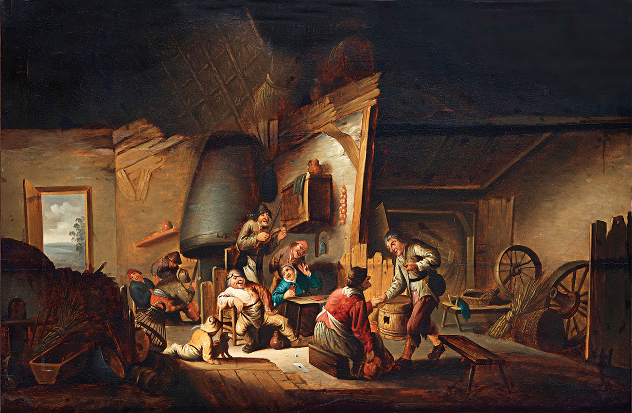 ₴ Репродукция бытовой жанр известного художника "Интерьер корчмы с пирующими крестьянами" - Остаде Адриан ван