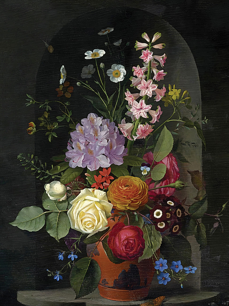 ₴ Репродукция цветочный натюрморт "Букет в вазе Wedgwood Rosso Antico, помещенный в нишу" - Оттесен Отто Дидрик