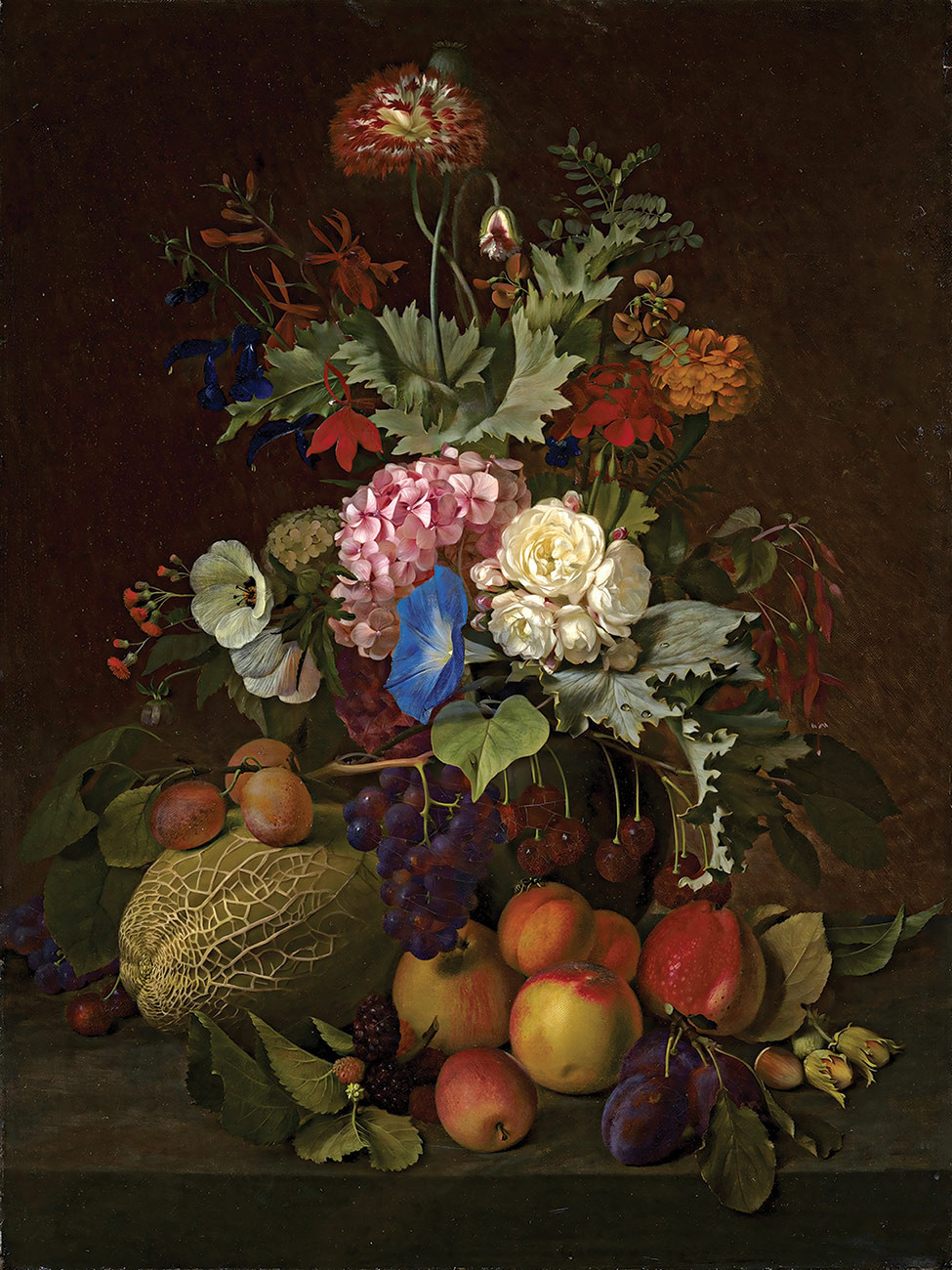 ₴ Репродукция натюрморт "Натюрморт с фруктами и цветами" - Оттесен Отто Дидрик