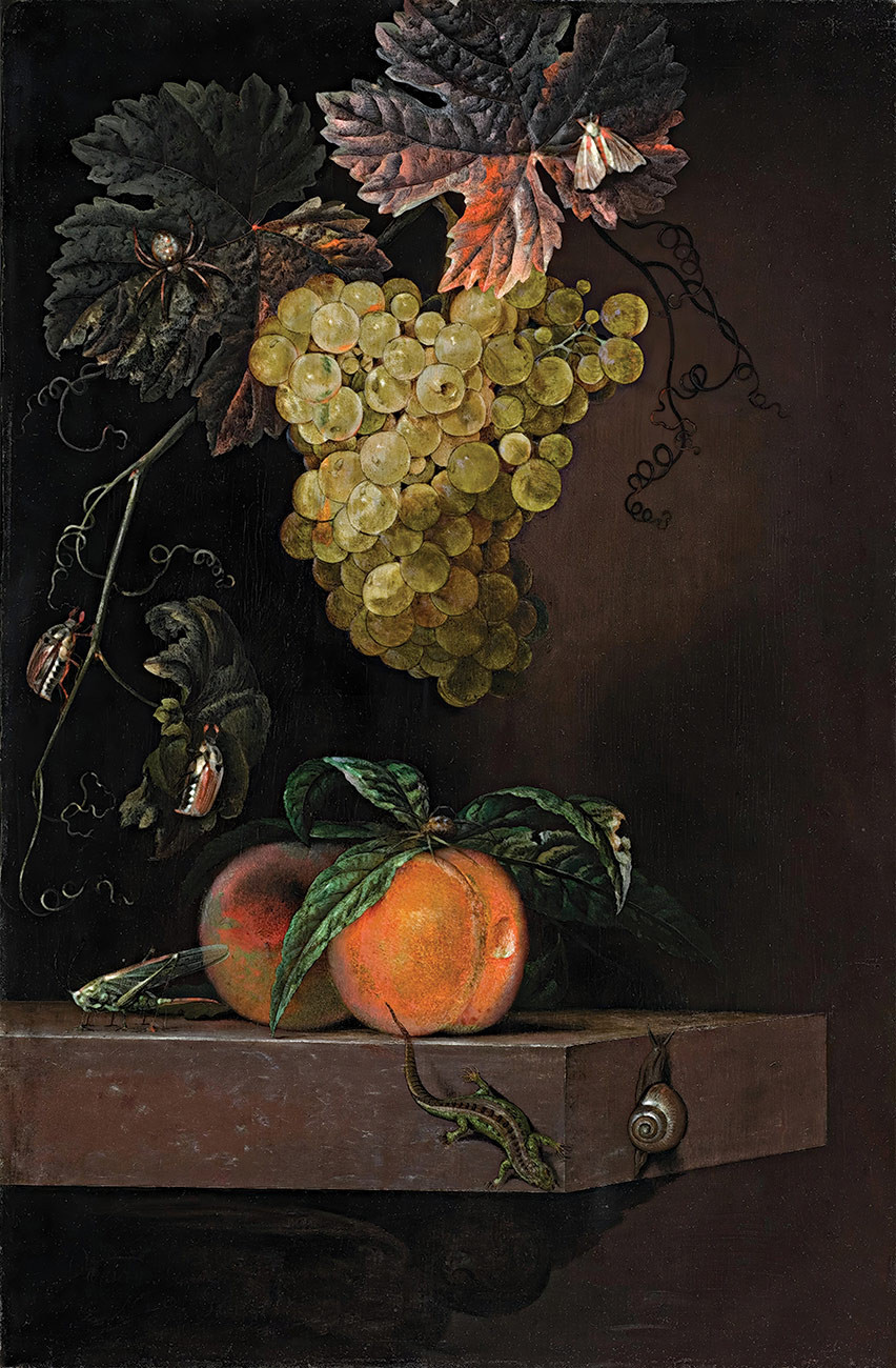 ₴ Репродукция натюрморт "Натюрморт с фруктами, ящерицей и насекомыми" - Оттмар Еллигер Младший