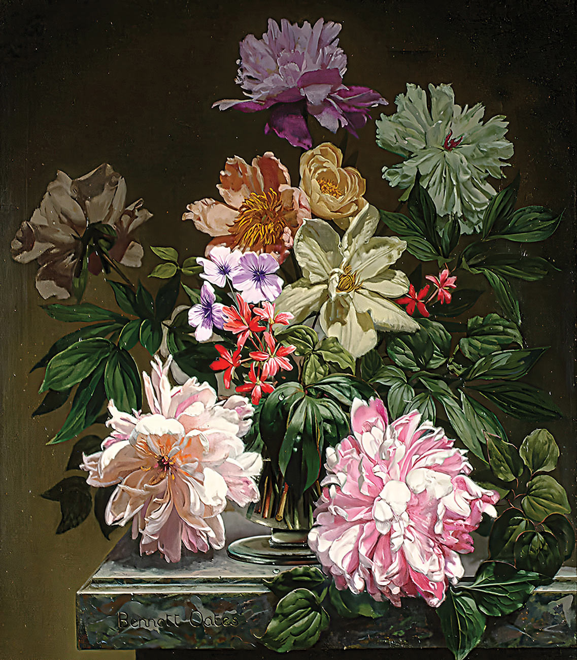 купите репродукцию цветочный натюрморт художника Оутса Беннетта — "Пионы с другими цветами"
