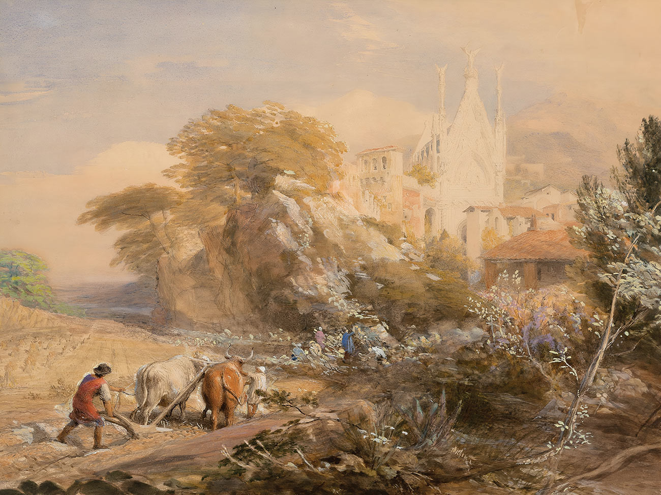 репродукция пейзажа художника Палмера Сэмюэля — "Урожайное поле и монастырь Ла Вокателла, недалеко от Корпо ди Кава"
