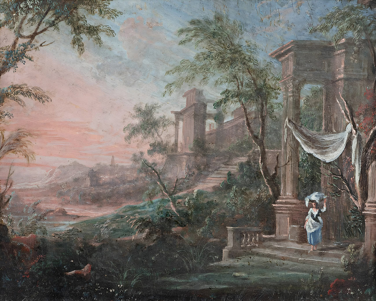 репродукция пейзажа художника Пателя Пьер-Антуана — "Пейзаж с древними руинами и прачкой"