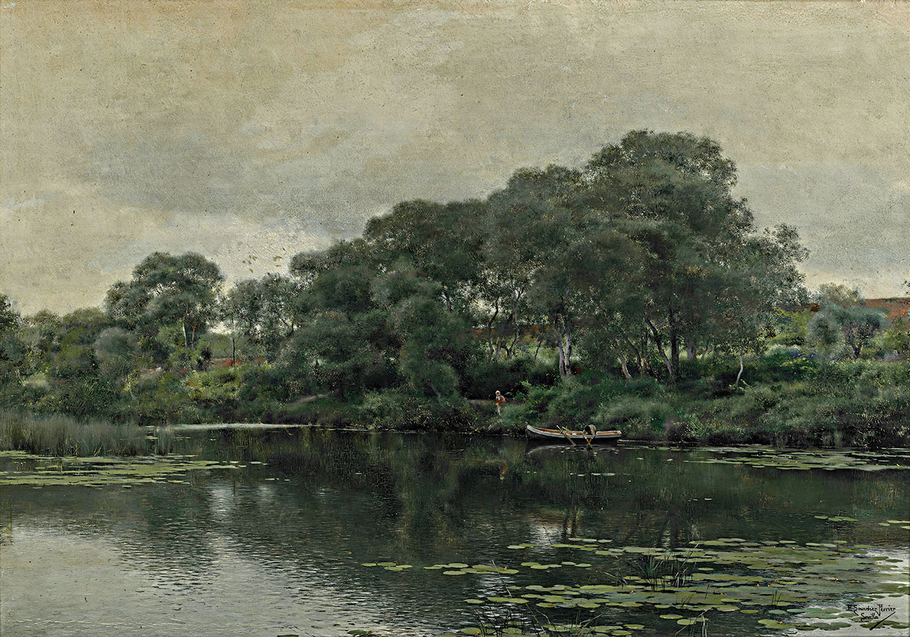 ₴ Репродукция пейзаж "Тишина на пруду с лилиями" - Перье Эмилио Санчес