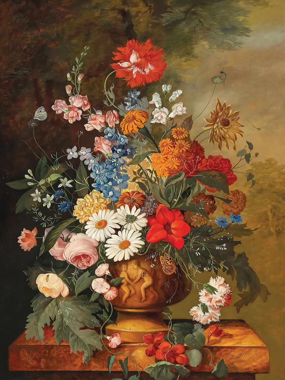 ₴ Репродукция цветочный натюрморт "Большой натюрморт с цветами" - Пилер Франц Ксавер