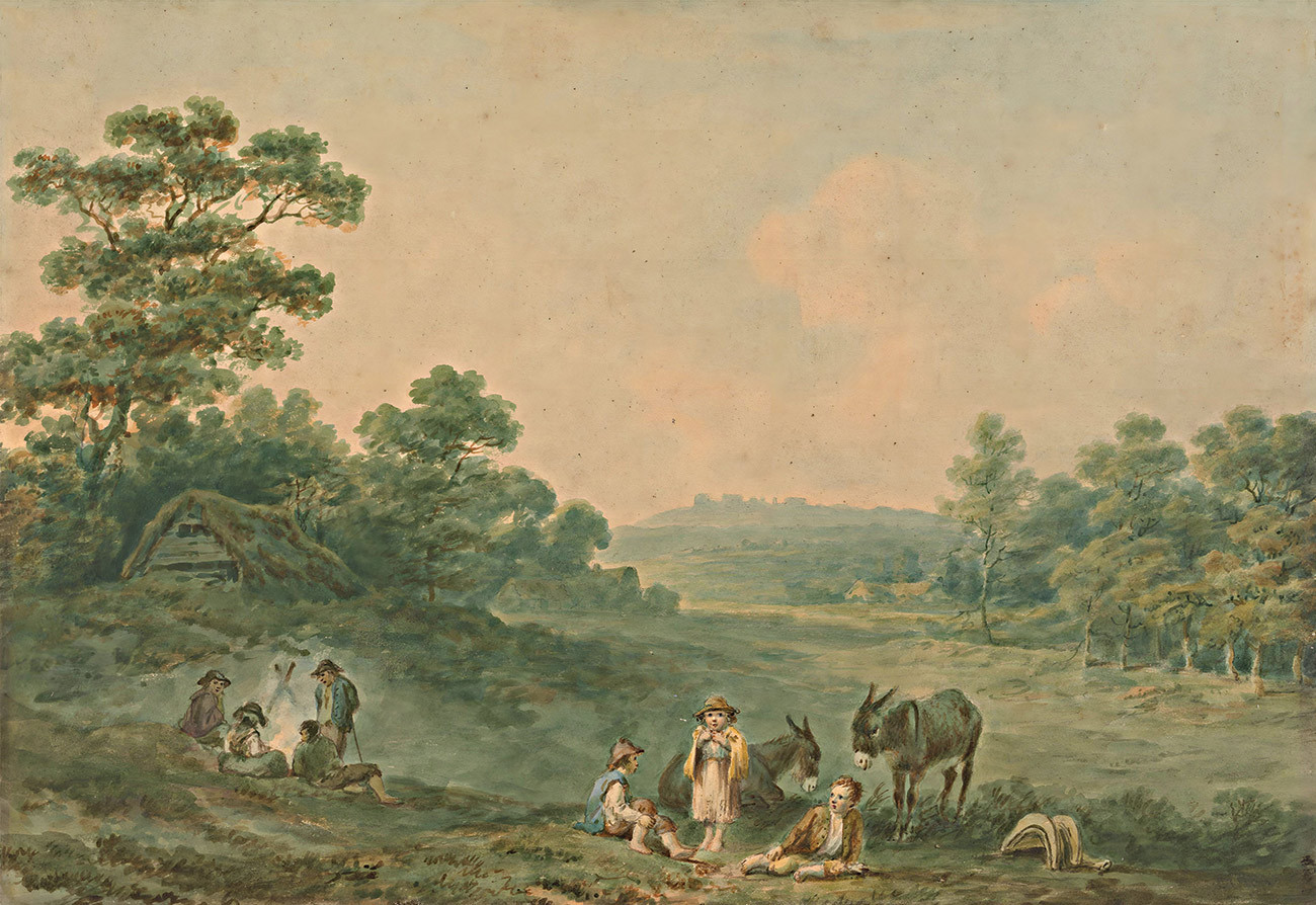 репродукция пейзажа художника Покока Николаса — "Пейзаж с цыганами"