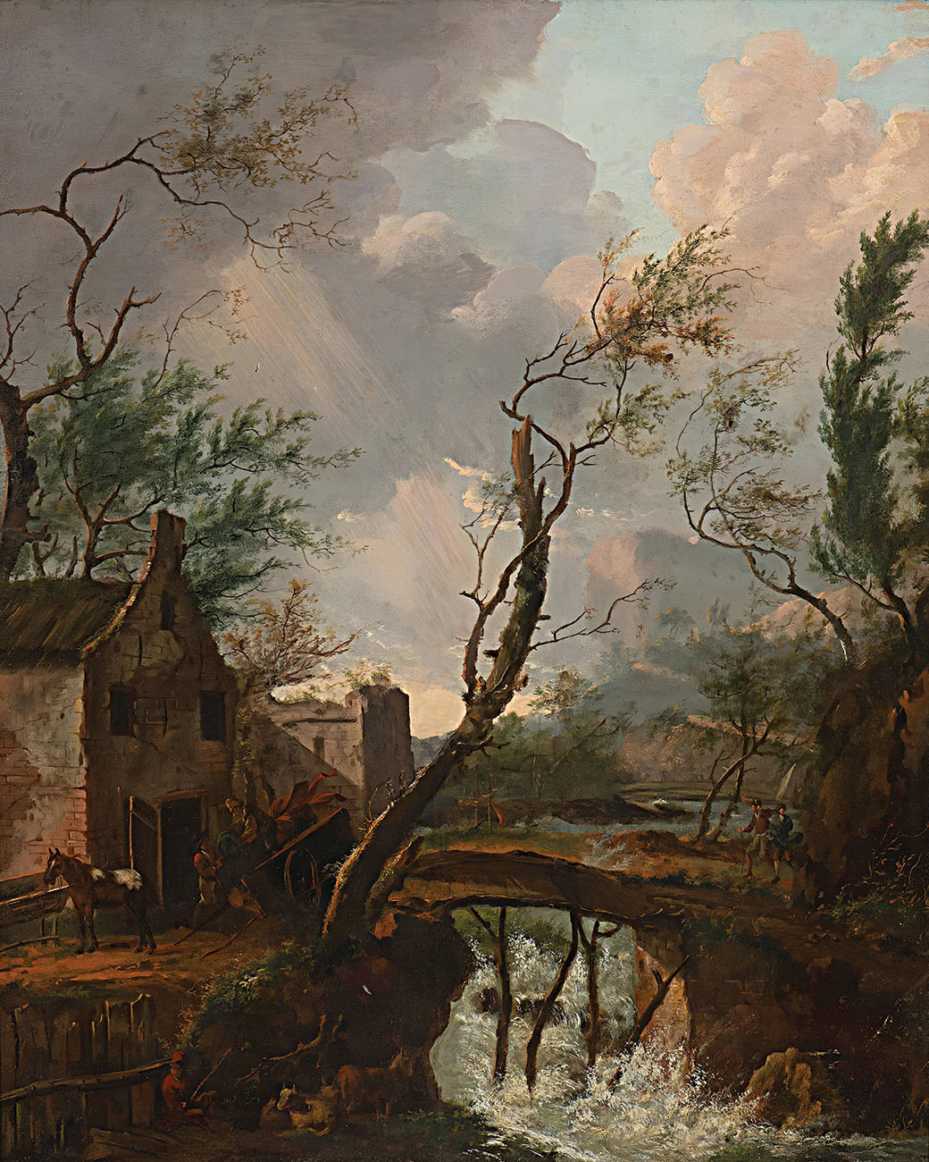 репродукция пейзажа известного художника Рейсдала Якоба — "Деревенский пейзаж с мостом"