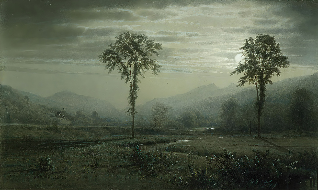 Репродукция пейзажа художника Уильяма Троста Ричардса — "Лунный свет на горе Лафайет, Нью-Гэмпшир"