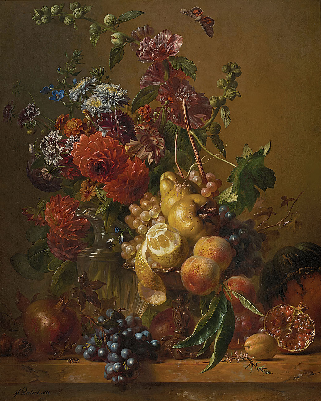 ₴ Репродукция цветочный натюрморт художника "Цветы и фрукты"