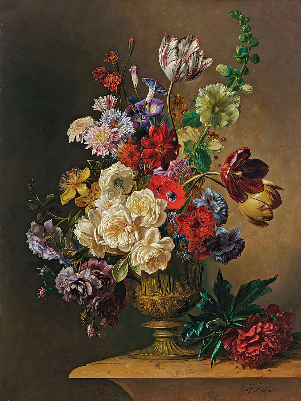 ₴ Репродукция цветочный натюрморт художника "Натюрморт с летними цветами" - Рикерс Хендрик