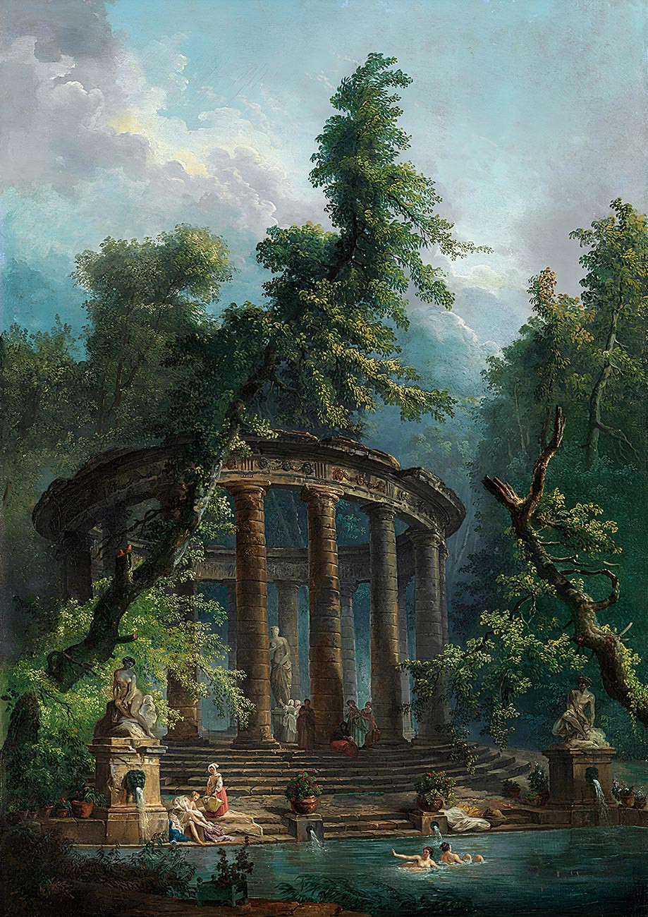 репродукция картины известного художника Робера Юбера - "Бассейн для купания"