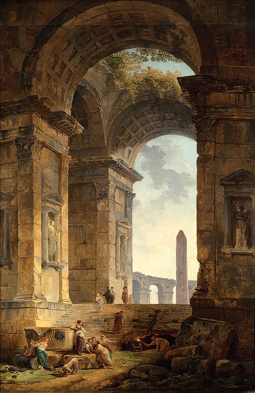 репродукция картины известного художника Робера Юбера - "Руины с обелиском вдали"