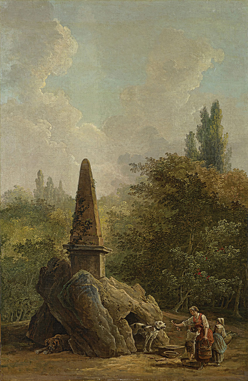 репродукция картины известного художника Робера Юбера - "Садовый памятник"