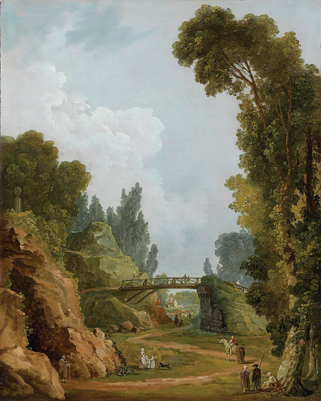 репродукция картины известного художника Робера Юбера - "Сельский мост, замок Меревиль"