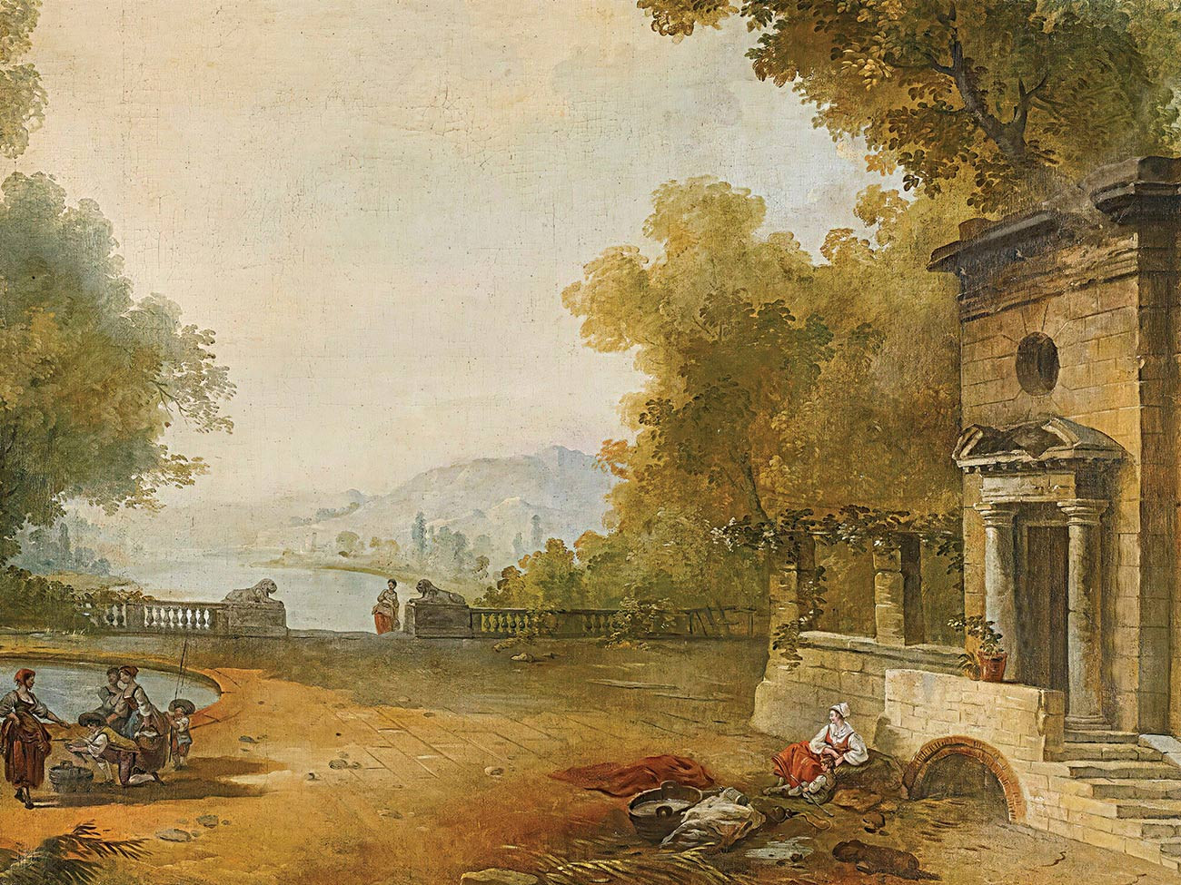 репродукция картины известного художника Робера Юбера - "Фигуры на террасе с видом на большое озеро"