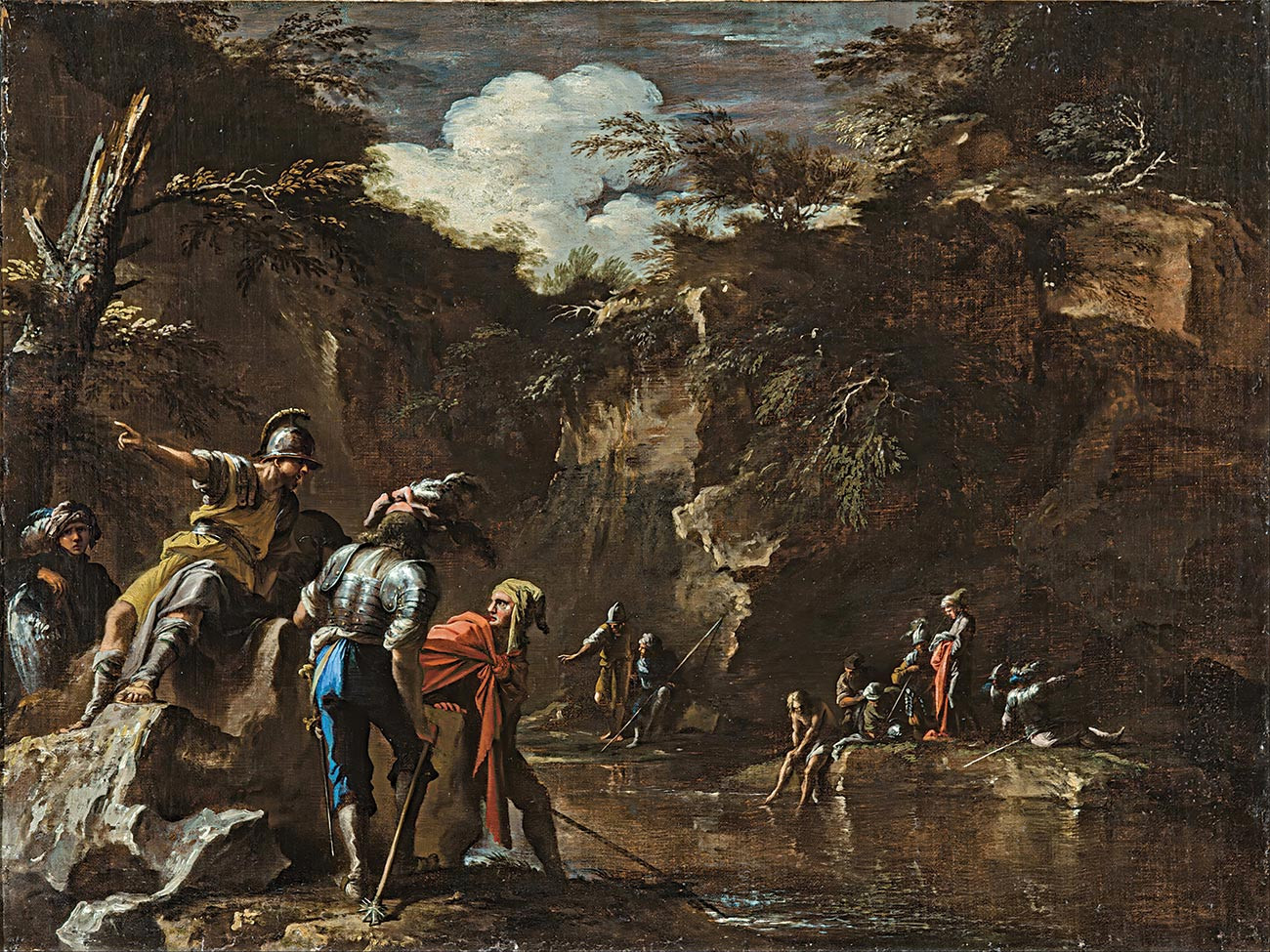 репродукция картины известного художника Роза Сальватора — "Фалес заставляет реку течь по обеим сторонам лидийской армии"