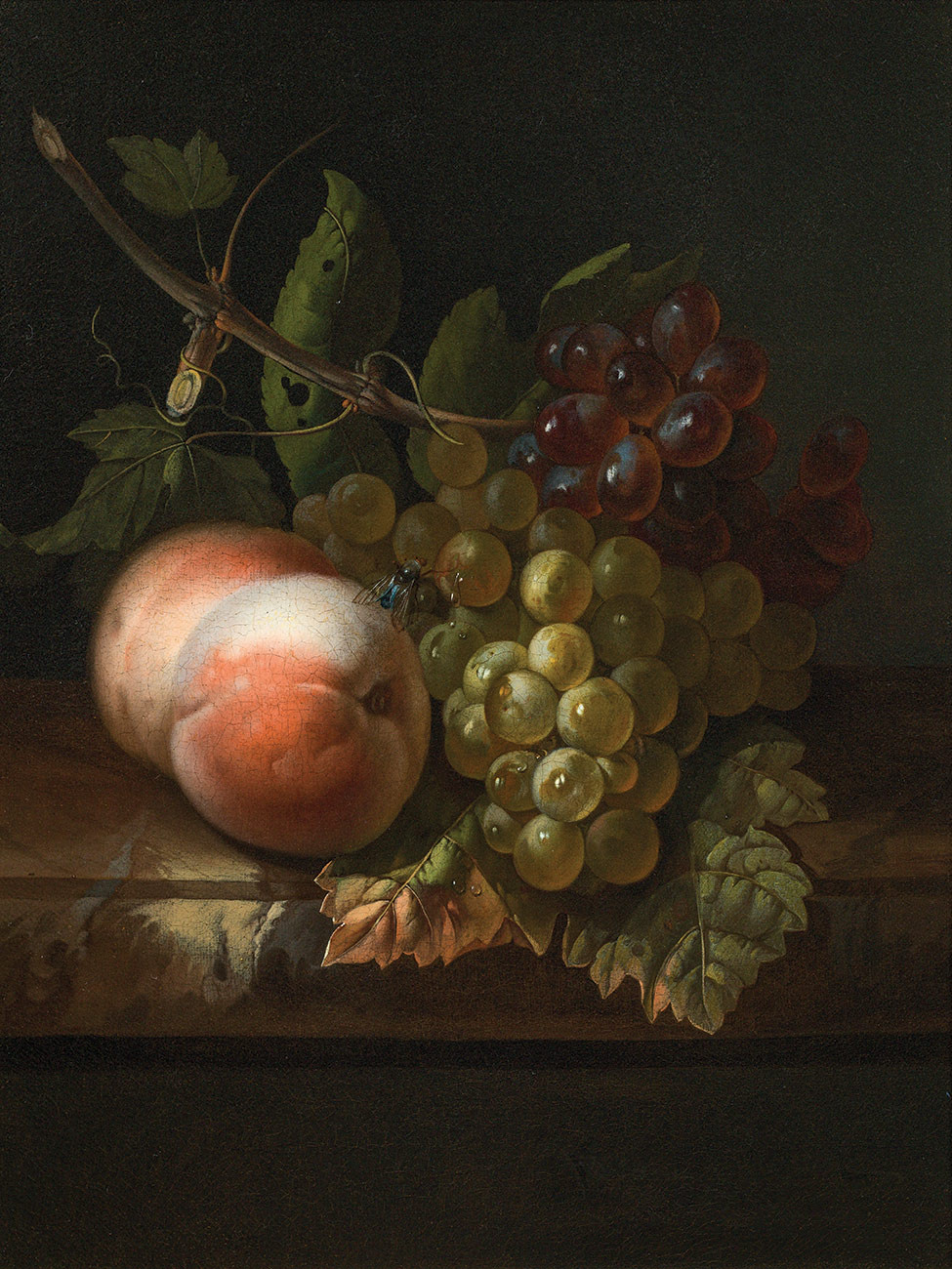 ₴ Репродукция натюрморт "Виноград, персики и муха" - Рюйш Рашель