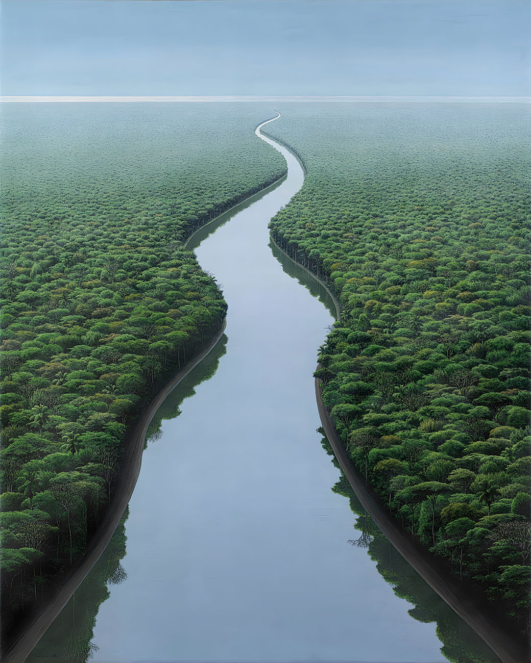 репродукция пейзажа художника Санчеса Томаса — "Река течет"