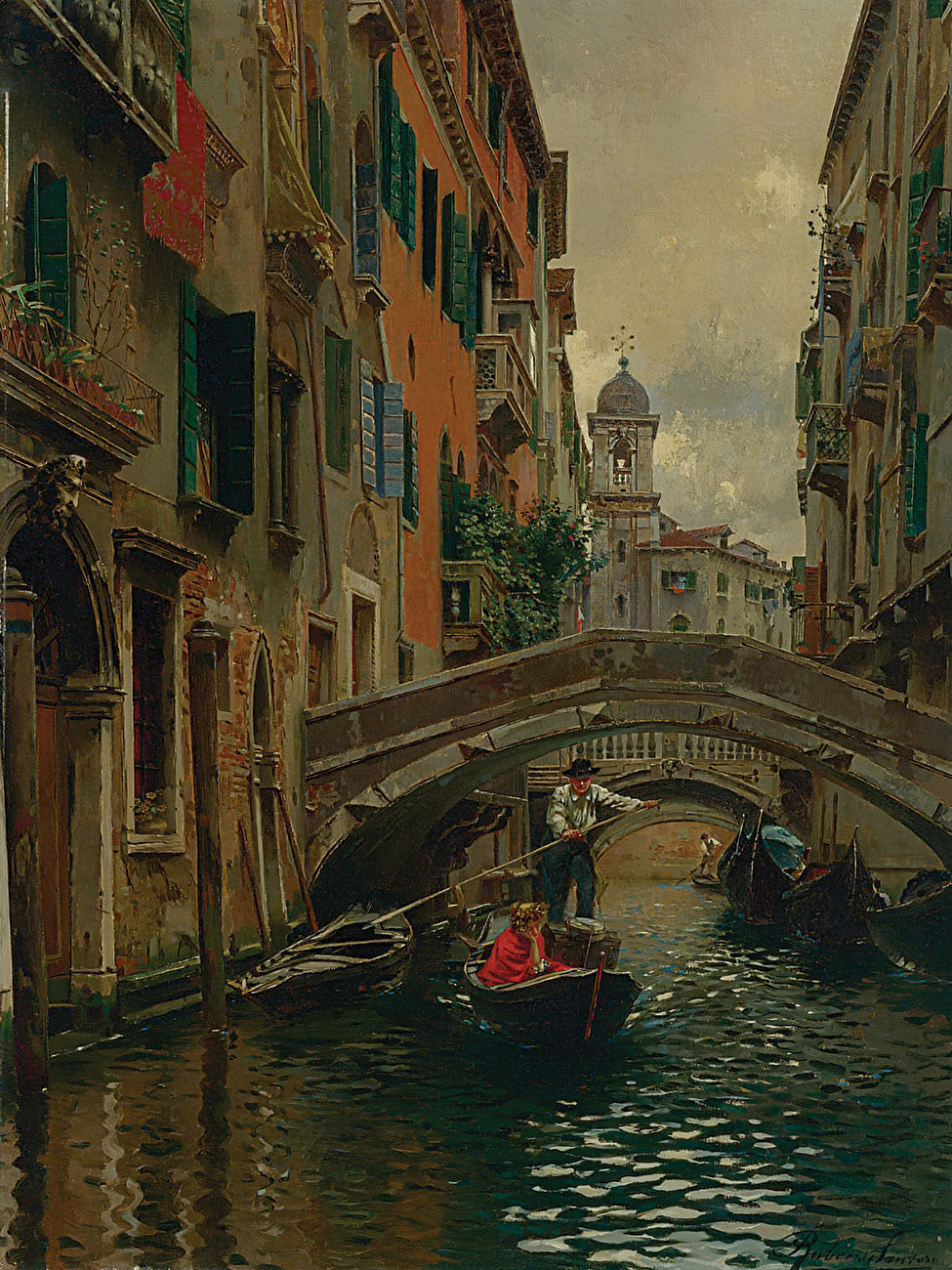 ₴ Репродукция городской пейзаж "Тихий канал, Венеция" - Санторо Рубенс