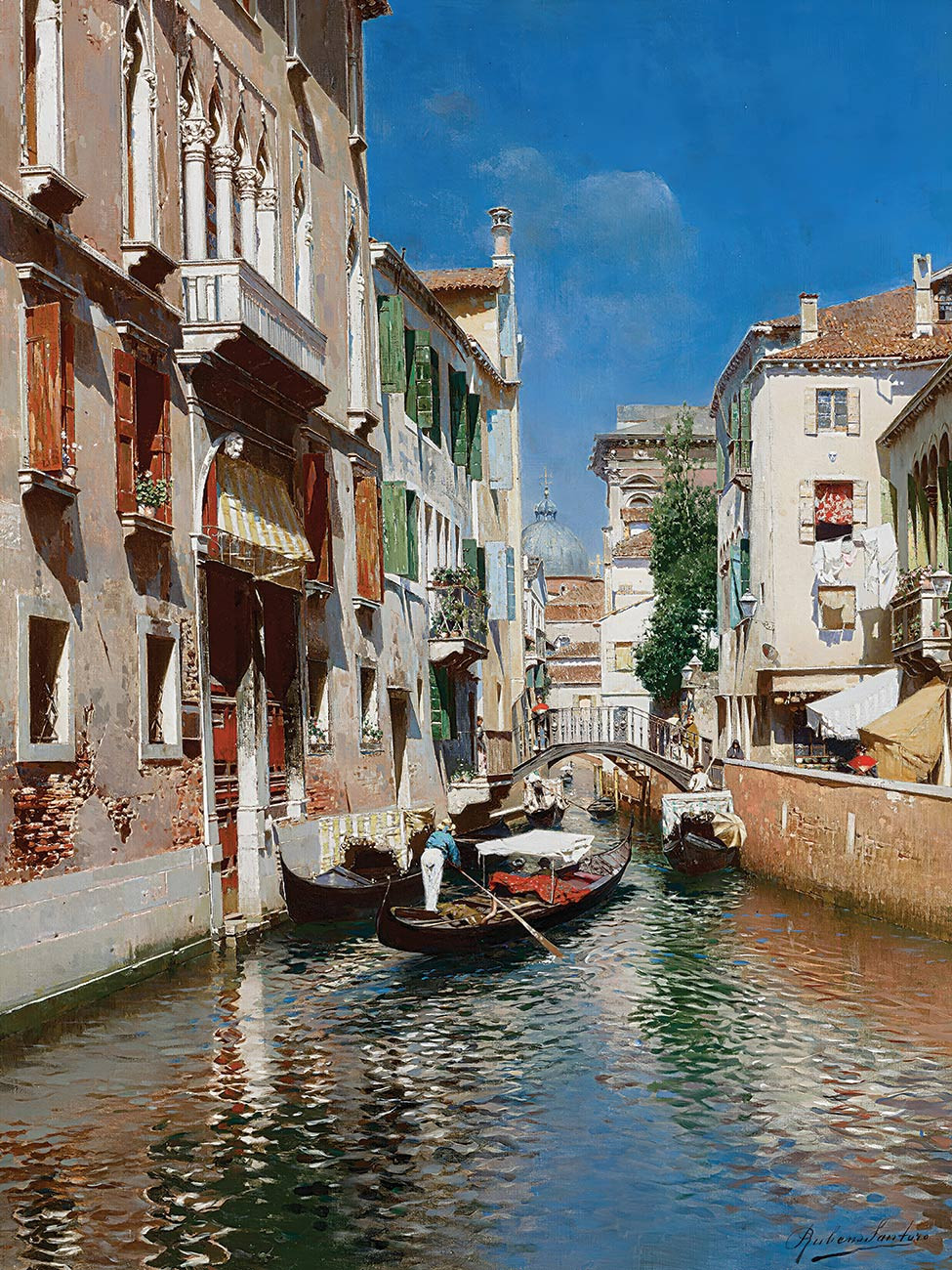 ₴ Репродукция городской пейзаж "Гондолы в Венеции" - Санторо Рубенс