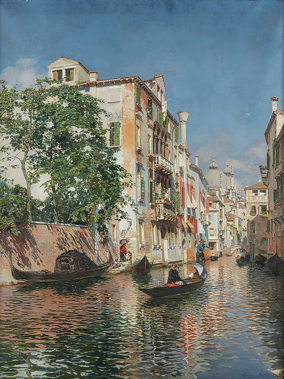 ₴ Репродукция городской пейзаж "Гондолы на венецианском канале, Санта-Мария-делла-Салюте вдали"