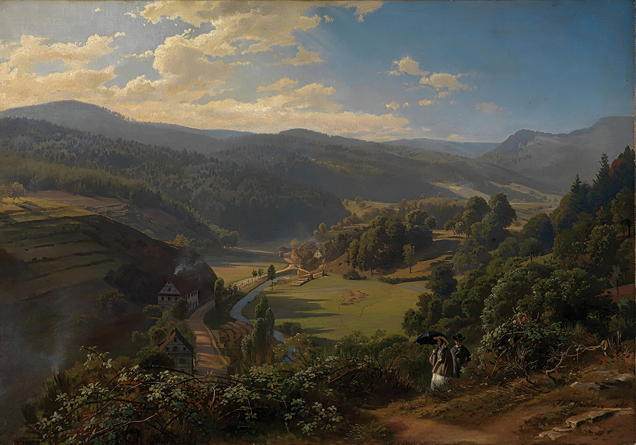 репродукция пейзажа художника Ширмера Иоганна — "Долина Герольдзау вблизи Баден-Бадена"