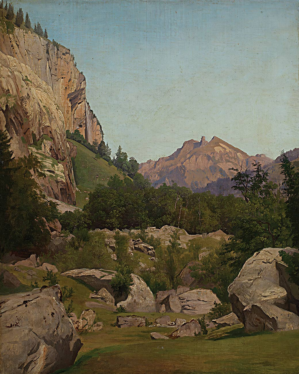 репродукция пейзажа художника Ширмера Иоганна — "Швейцарский горный ландшафт"