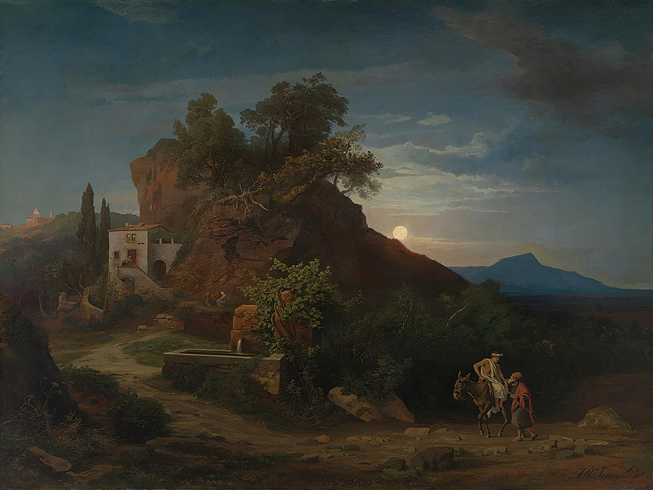 ₴ Репродукция пейзаж "Ночь, Прибытие самарянина с раненым мужчиной в отель" - Ширмер Иоганн Вильгельм