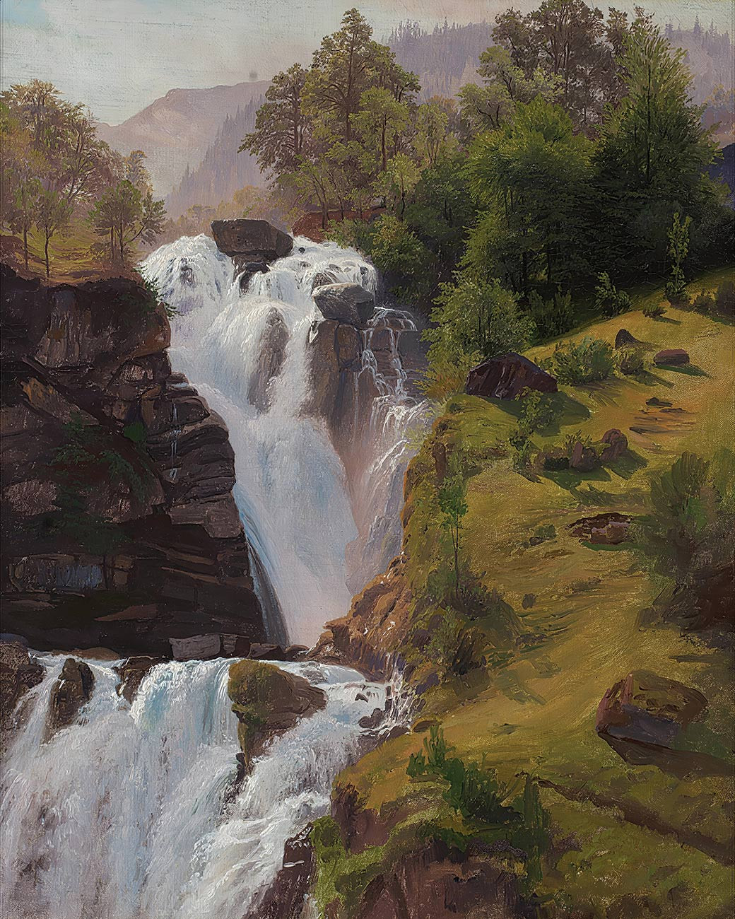₴ Репродукция пейзаж "Райхенбахский водопад вблизи Майрингена" - Ширмер Иоганн Вильгельм