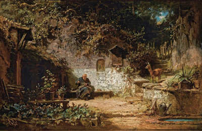 ₴ Репродукция бытовой жанр "Отшельник чинит свои сетки" - Шпицвег Карл
