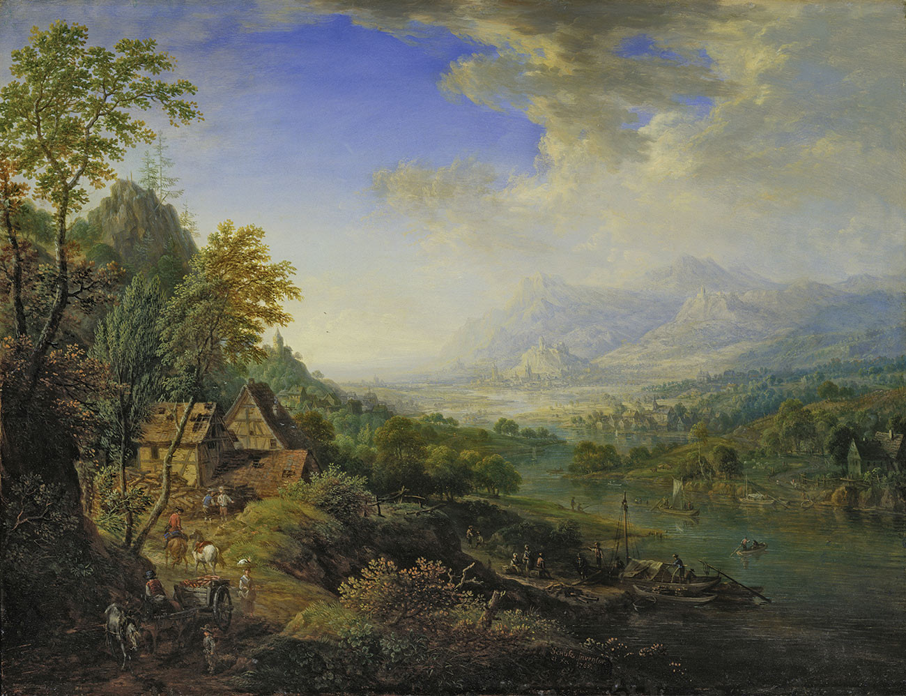 ₴ Репродукция пейзаж "Пейзаж с рекой" - Шютц Кристиан Георг Старший