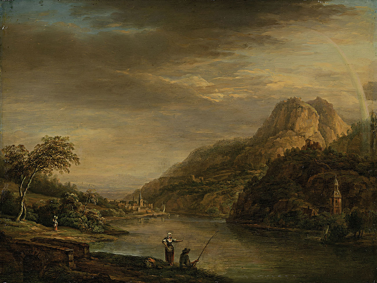 репродукция пейзажа художника Шютца Кристиана — "Горный речной пейзаж с радугой"