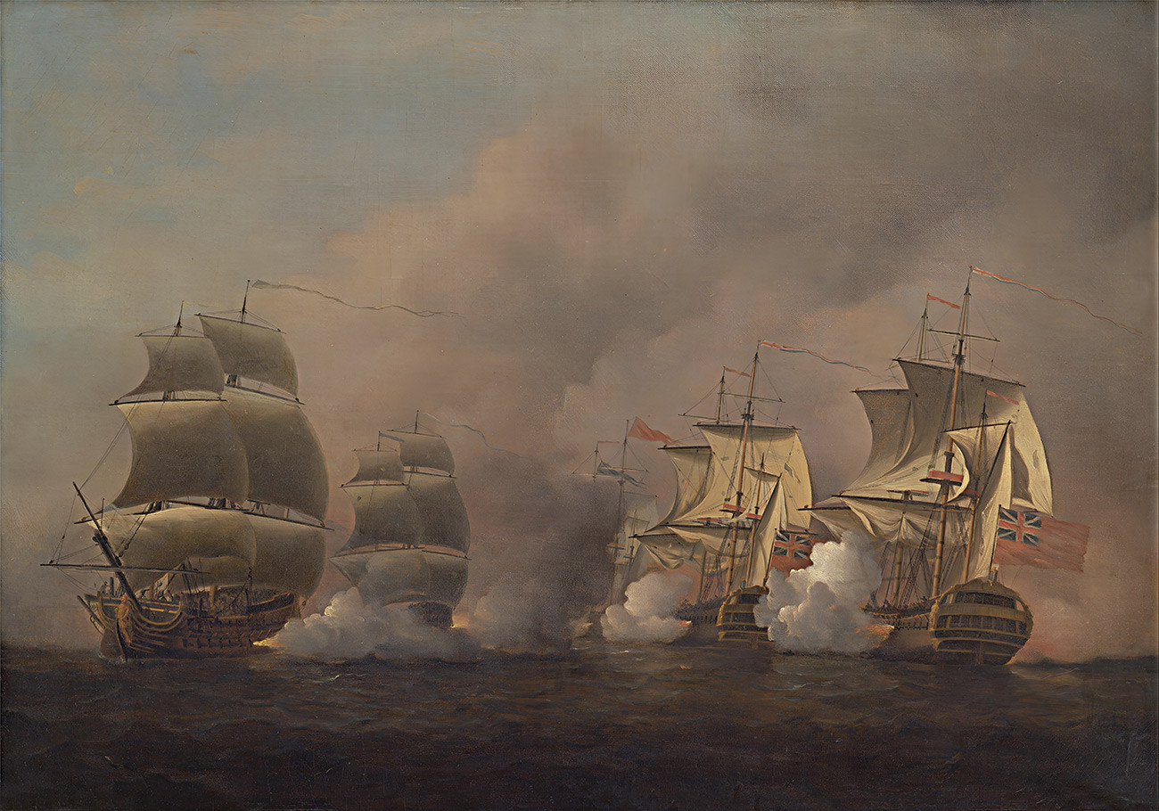репродукция морского пейзажа известного художника Скотта Самуэля — "Действия у мыса Доброй Надежды"