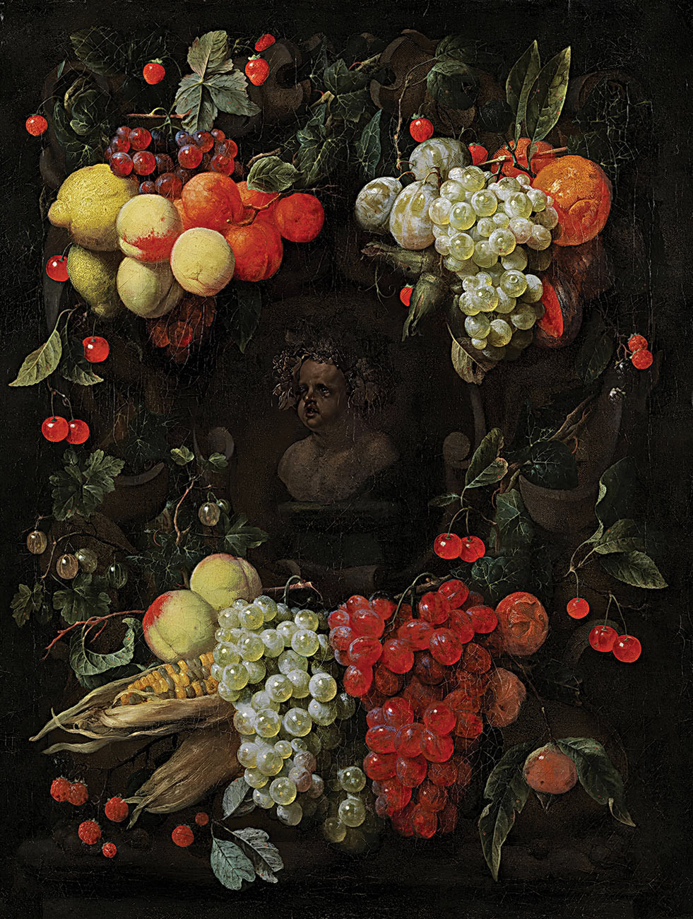 ₴ Репродукция натюрморт "Бюст в окружении фруктов" - Сон Йорис ван