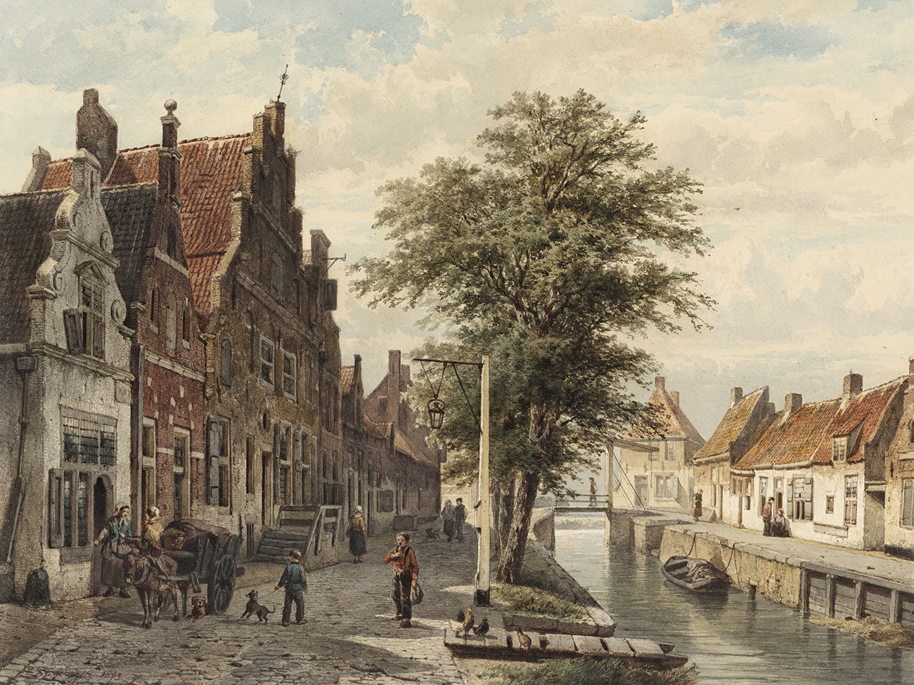 репродукция картины известного художника Спрингера Корнелиса — "Вид на канал в Хасселте"