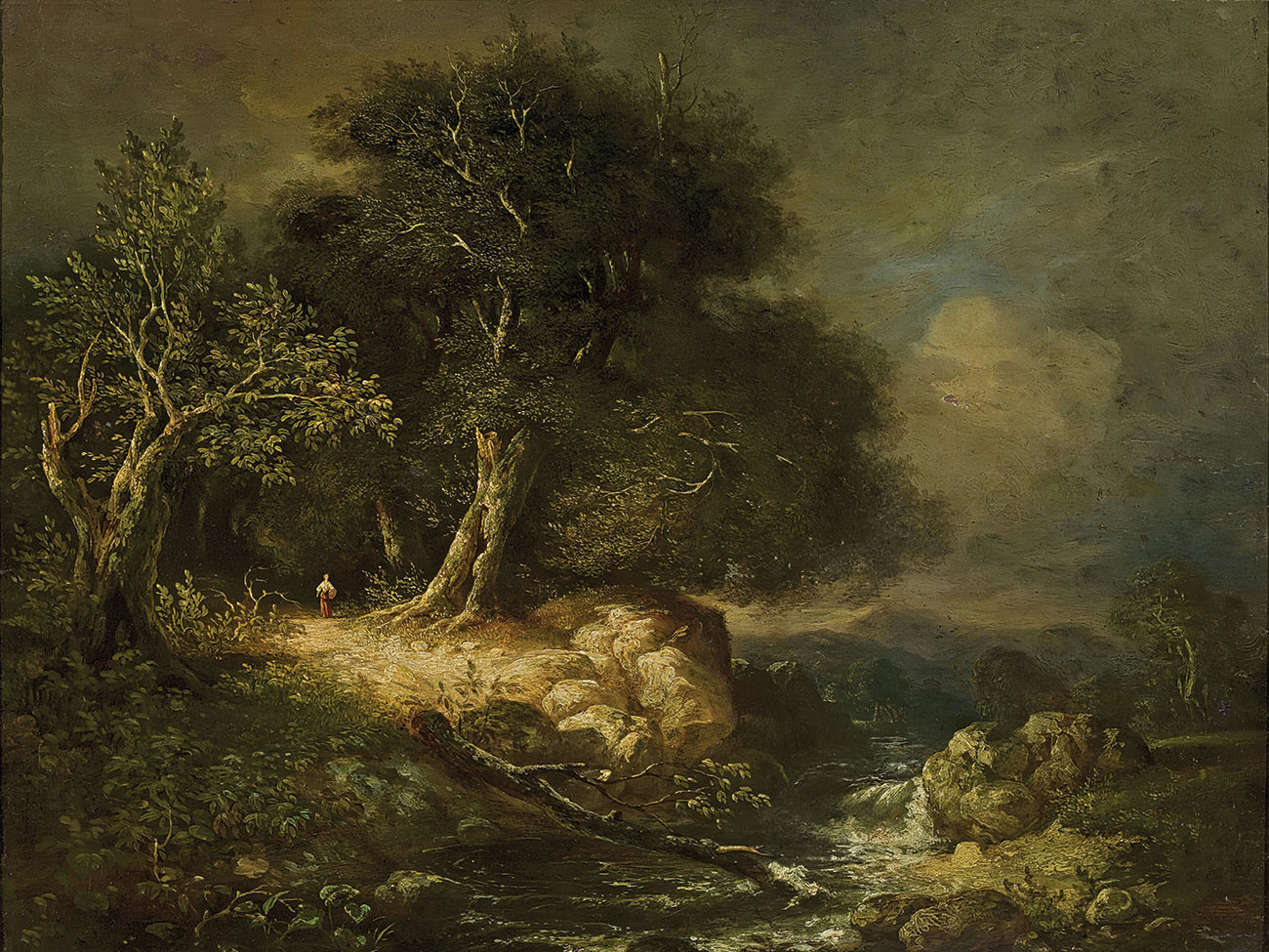 ₴ Репродукция пейзаж "Лесной пейзаж с дорогой и рекой" - Старк Джеймс