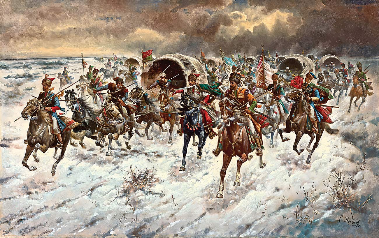 репродукция картины художника Стоилоффа Адольфа — "Казаки на марше"