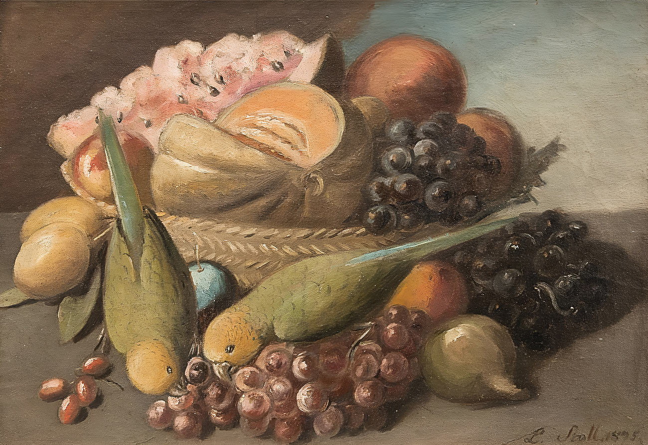 купите репродукцию натюрморт художника Столла Леопольда — "Натюрморт с птицами и фруктами"