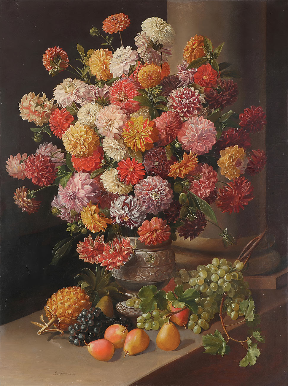 купите репродукцию натюрморт художника Столла Леопольда — "Большой натюрморт с георгинами и хризантемами"