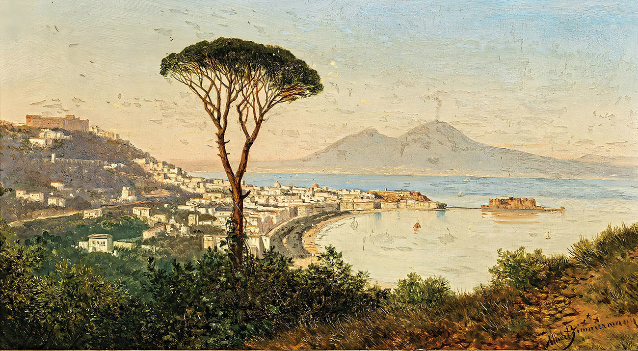 репродукция пейзажа художника Циммерманна Августа — "Вид на Неаполитанский залив"