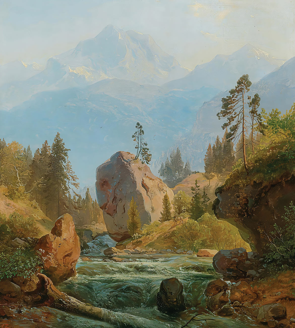 ₴ Репродукция пейзаж "Горный пейзаж с ручьем" - Циммерманн Август Альберт