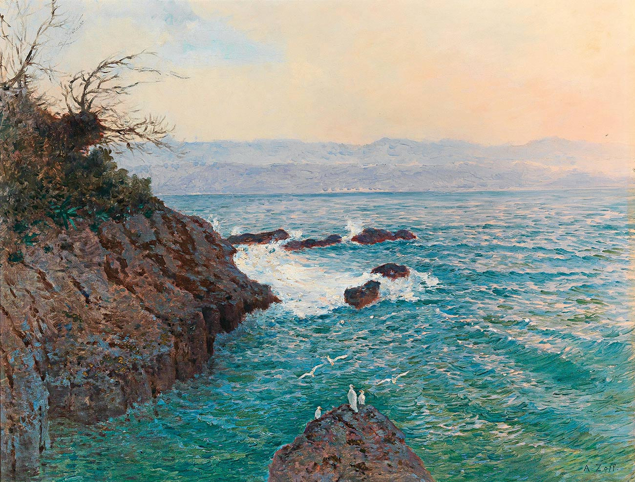 репродукция морского пейзажа художника Цоффа Альфреда — "Вид на побережье Нерви"